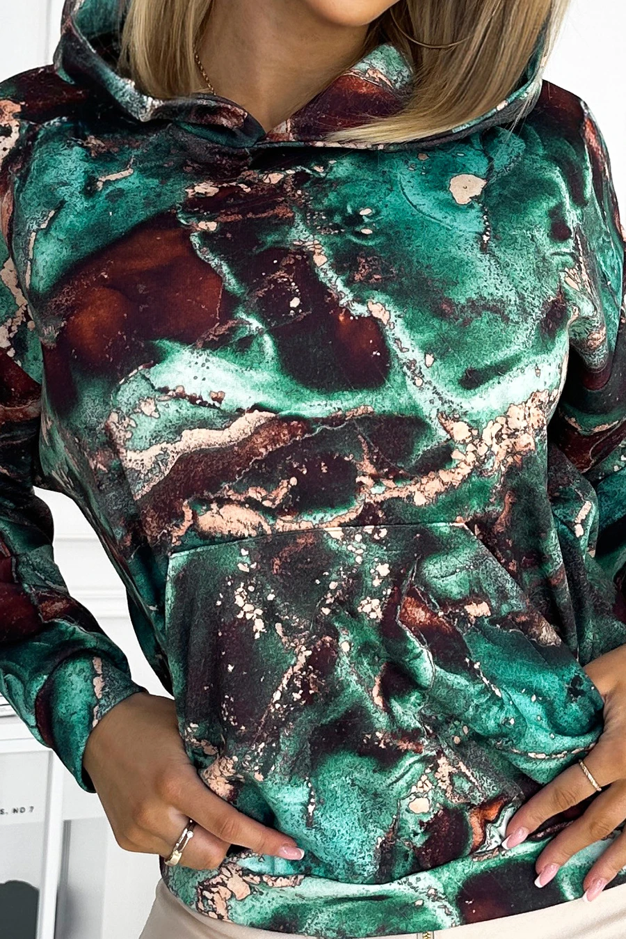 390-2 Kangaroo hoodie - turquoise brown marble