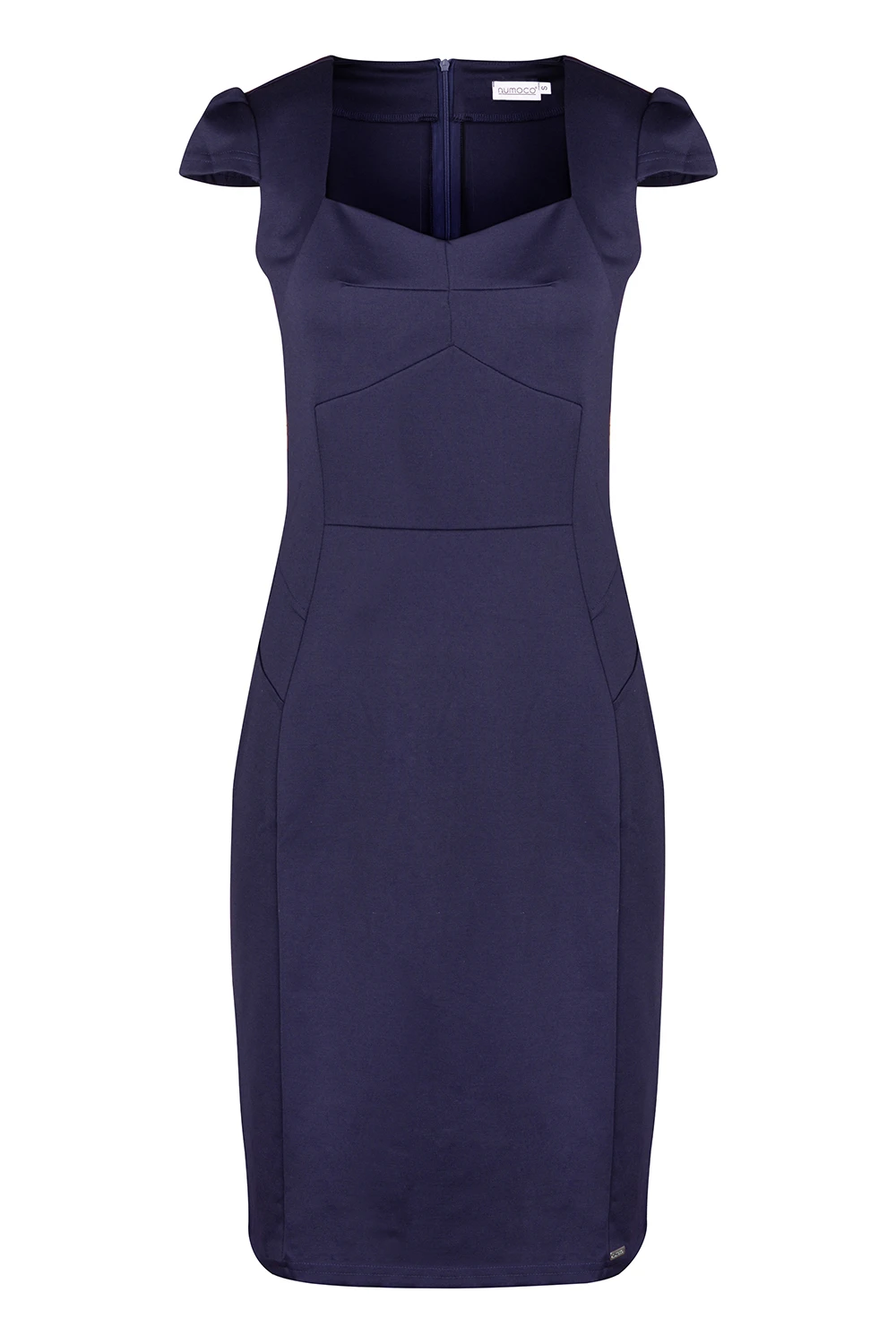 318-5 Elegant midi dress with a nice neckline - navy blue