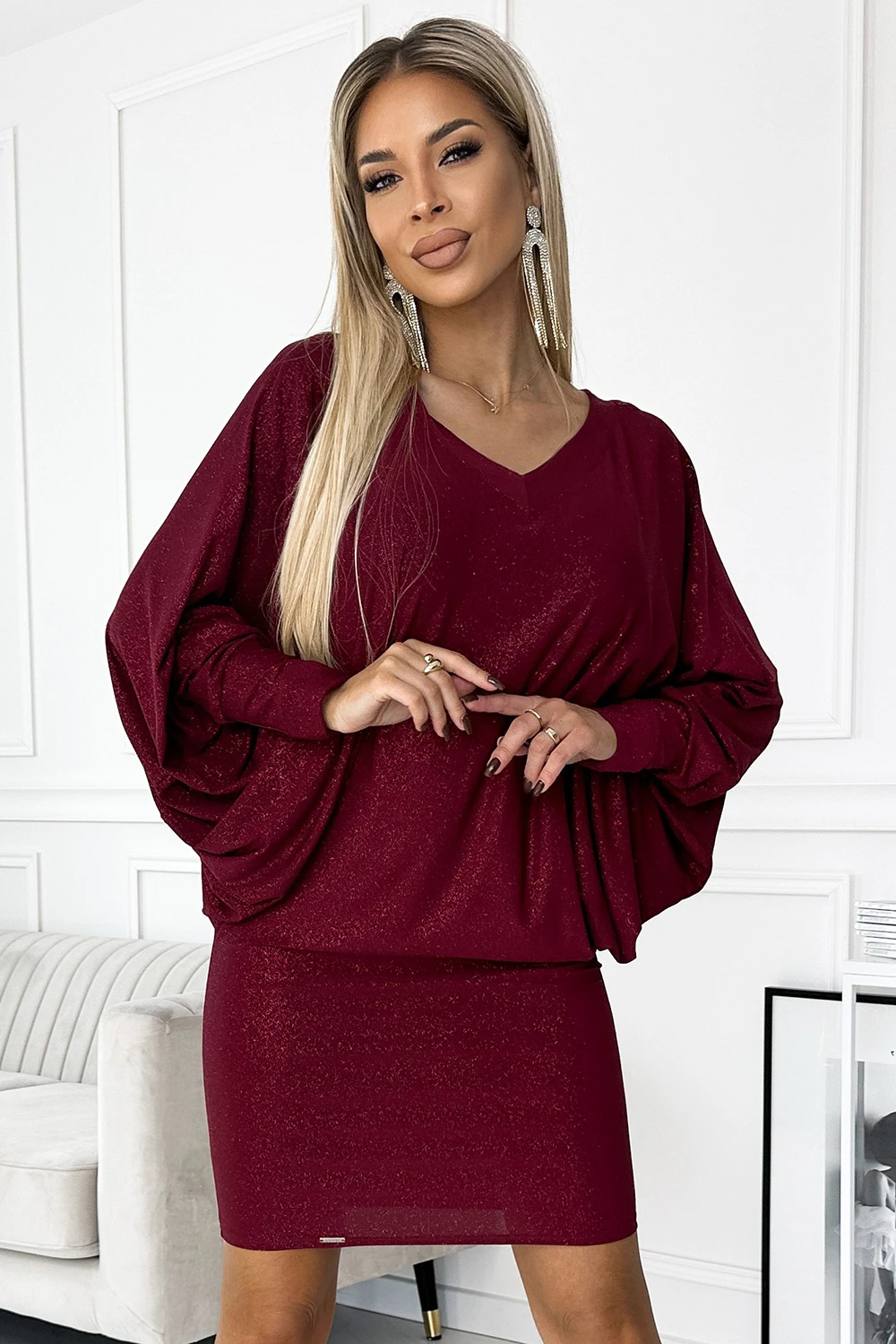 402-4 Bat dress with a neckline - burgundy color with glitter