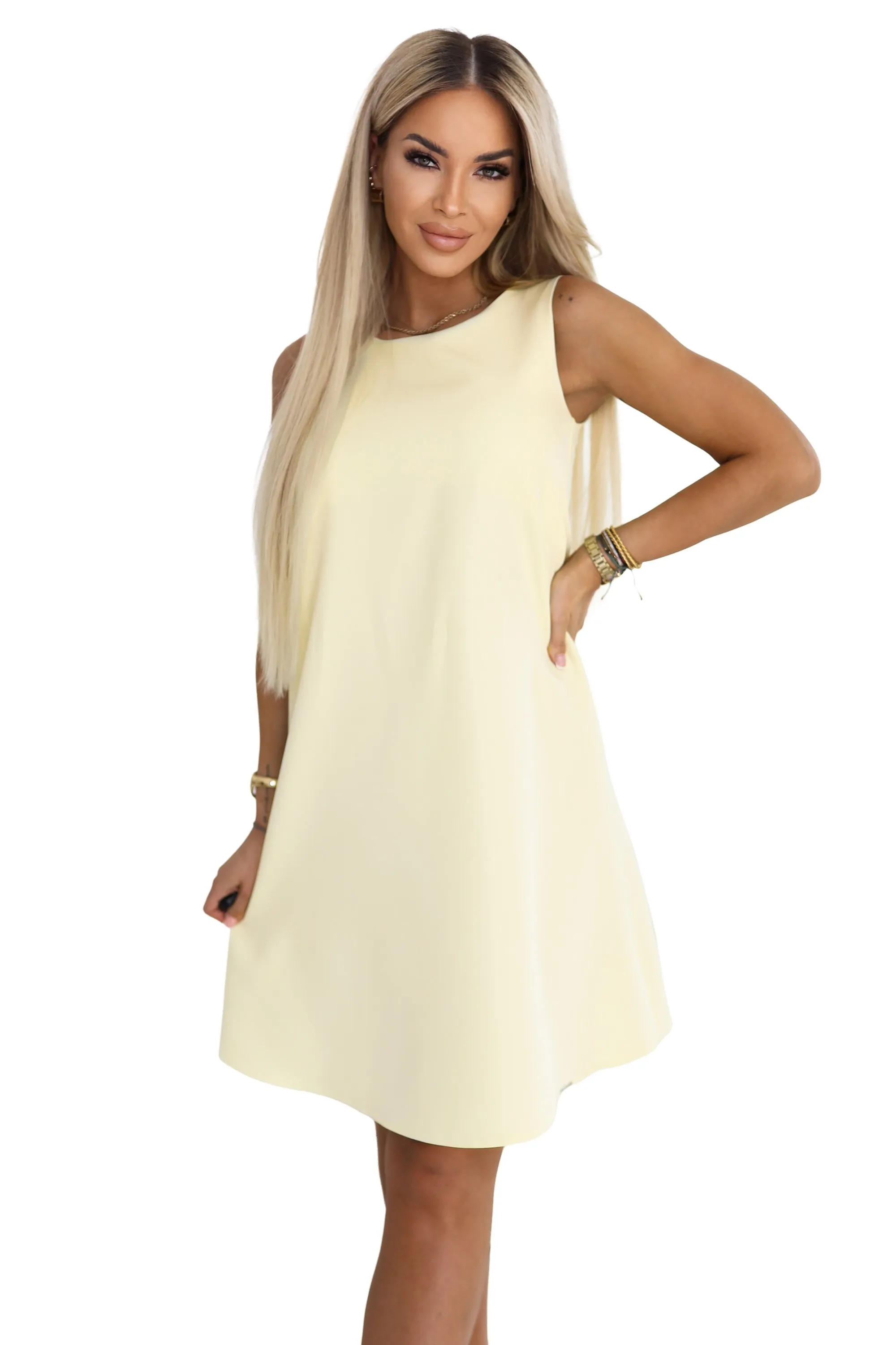 296-16 VICTORIA Sleeveless trapeze dress with a belt - butter yellow