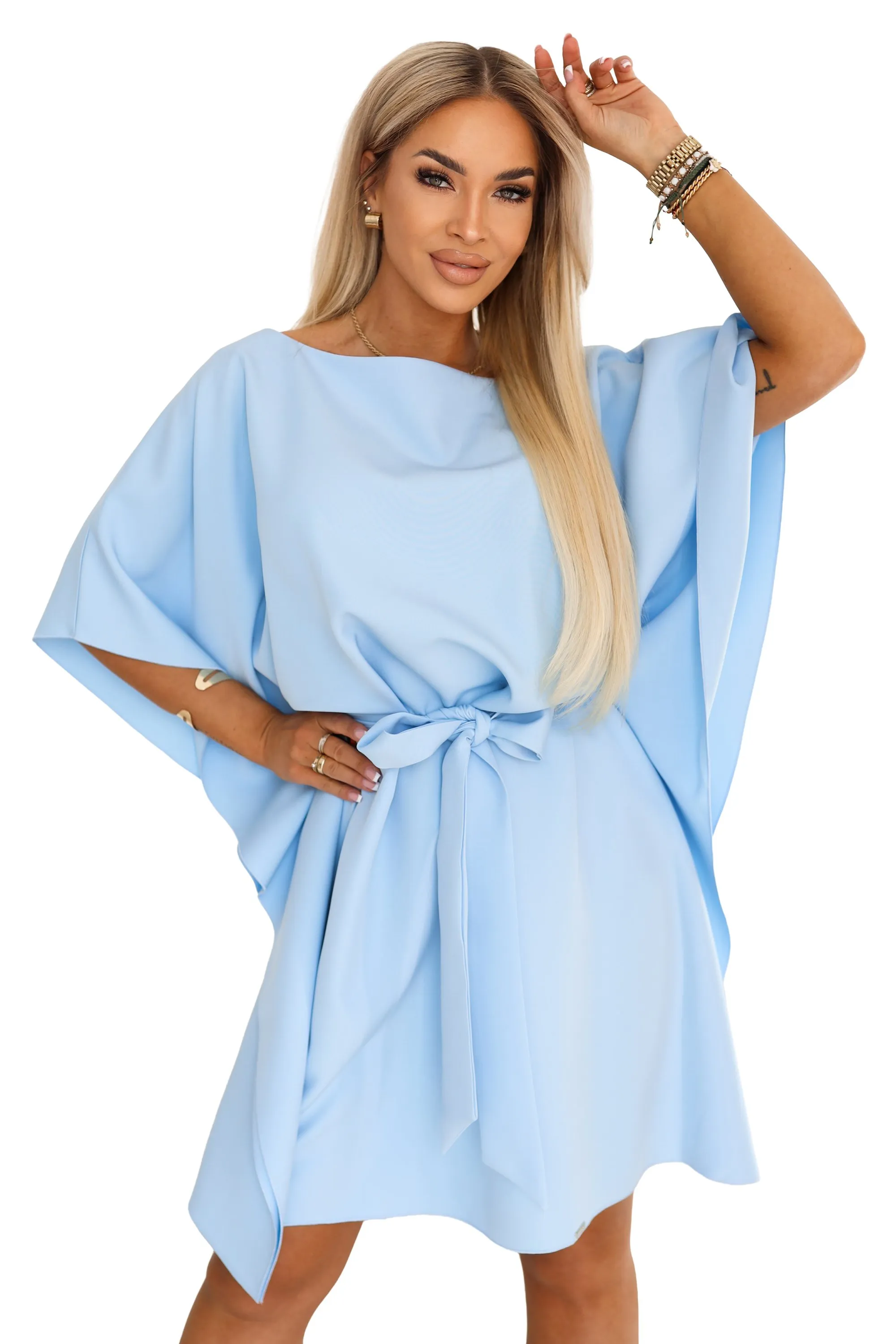 287-43 SOFIA Butterfly-style dress with a tie waist - light blue